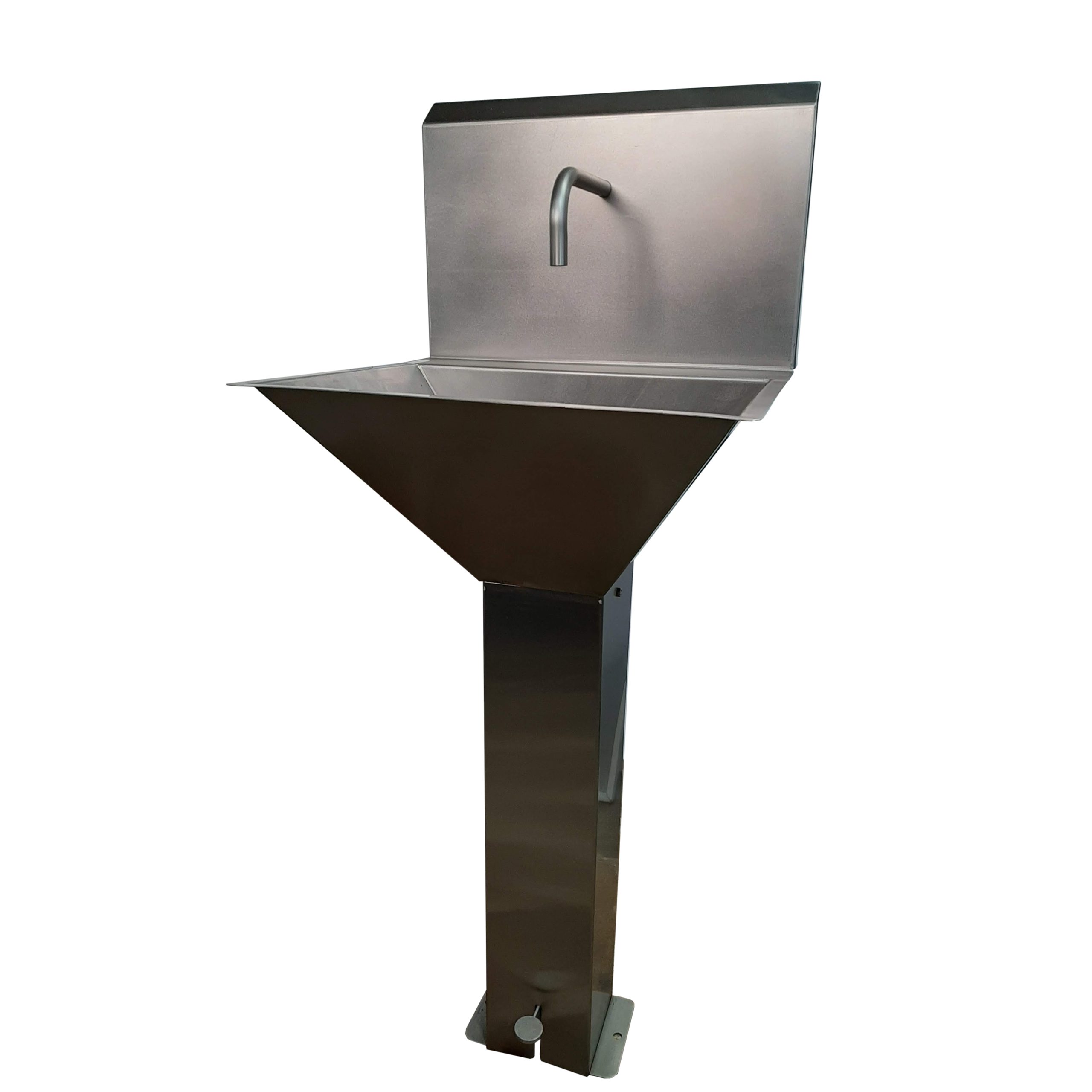 Lavamanos con accionamiento de pedal TECSAL fabricado en acero inoxidable tipo 304 calibre 18. equipo diseñado para empotrar a piso.