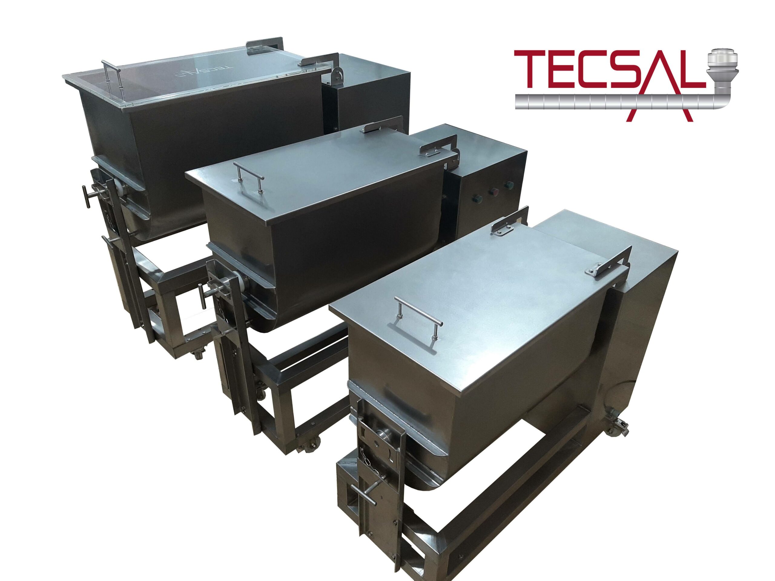 Su construcción es en acero inox AISI 304, calibres 14 – 16 – 18 estructura esta reforzada con tubería cuadrada, tapa en acero inox. Cuenta con inversión de giro para hacer más eficiente el proceso de mezclado, piezas móviles de fácil ensamblaje para facilitar la limpieza, tanque volcable y caja con acople directo al módulo de aspas.