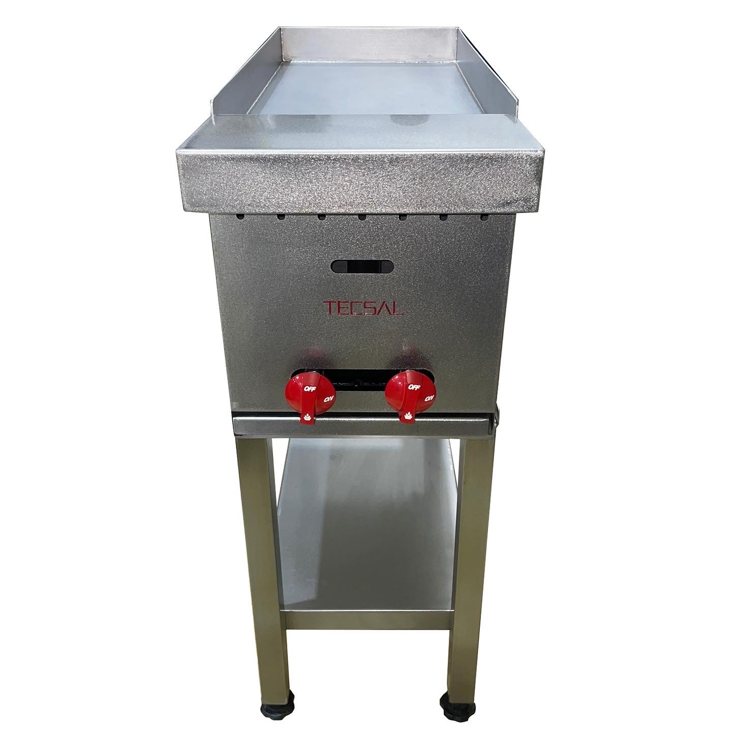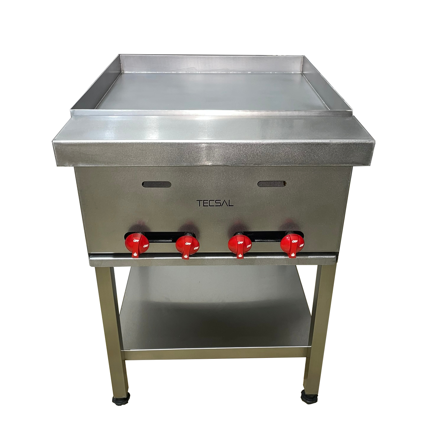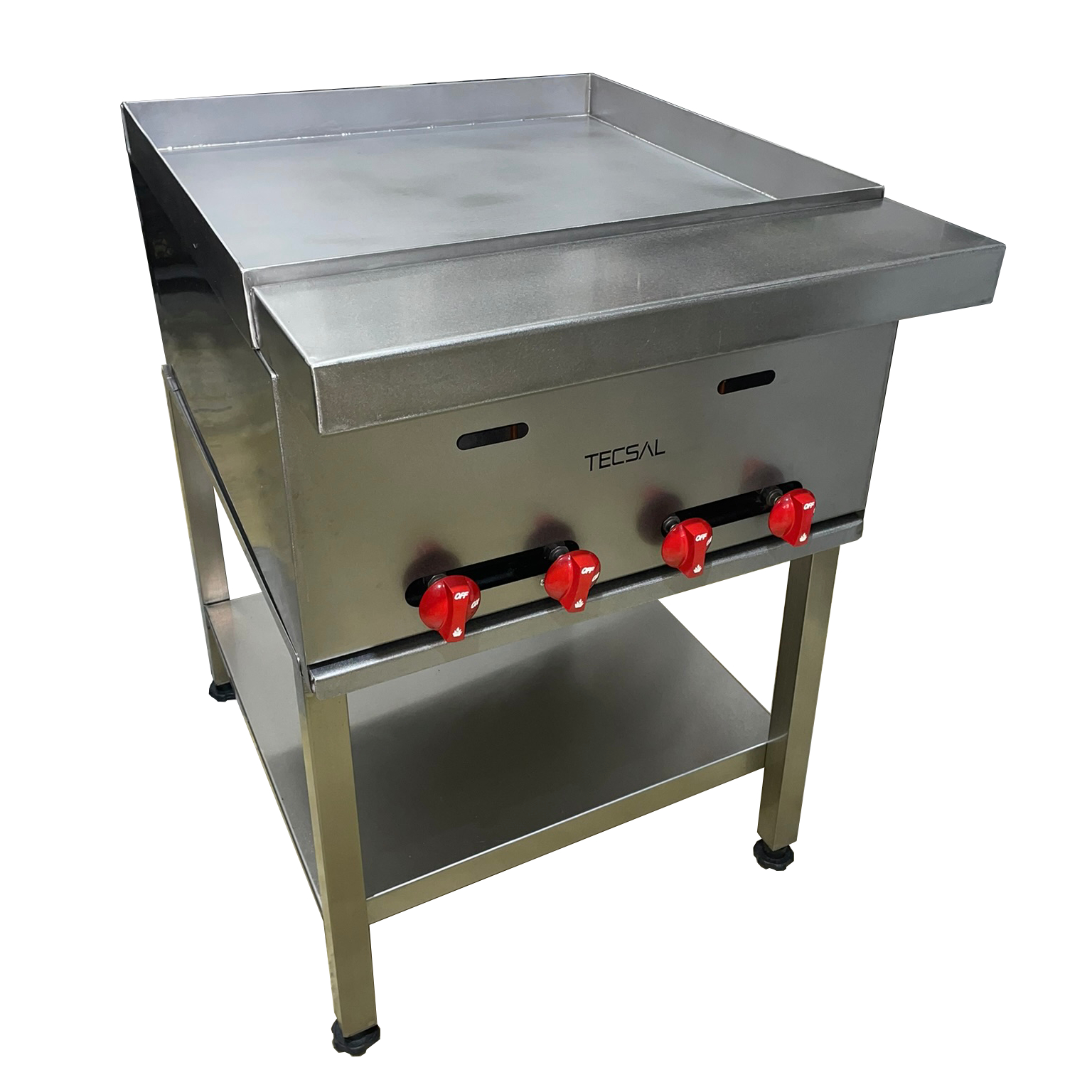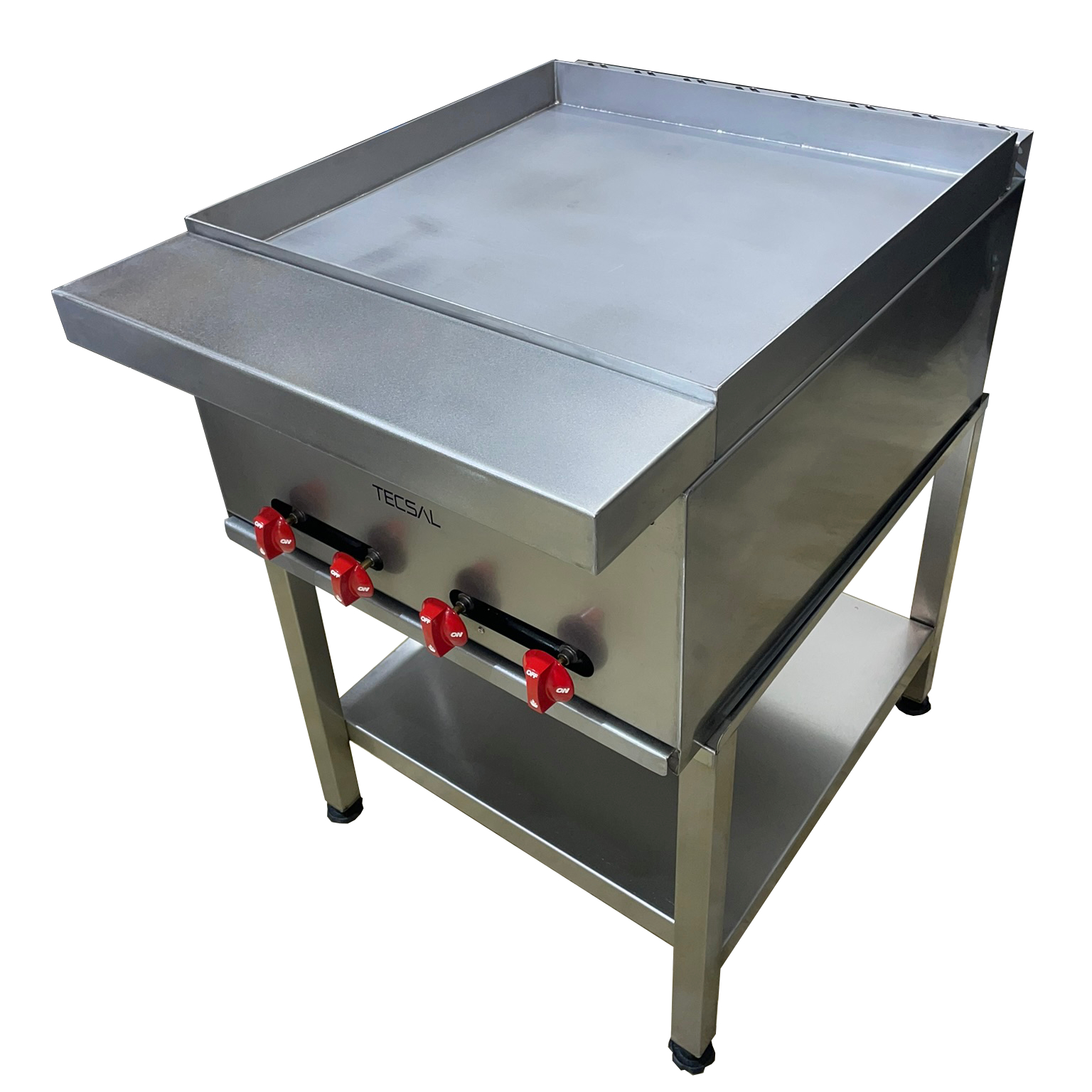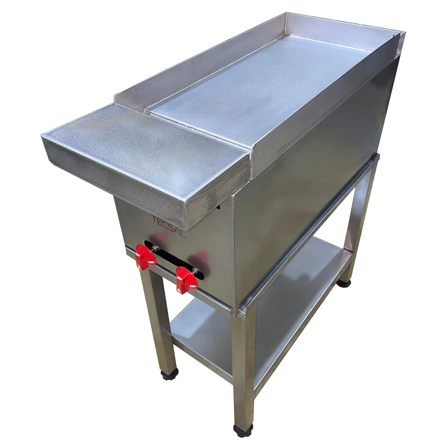 Plancha TECSAL construida totalmente en acero inoxidable calibre 18 tipo 304, base con estructura en tubería cuadrada.